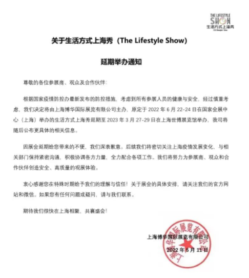 以下是兩個上海展的延期公告,同時請關(guān)注將于今年12月14-16日在深圳國際會展中心舉辦的2022深圳國際船艇展和深圳生活方式秀。