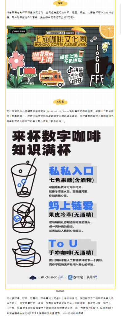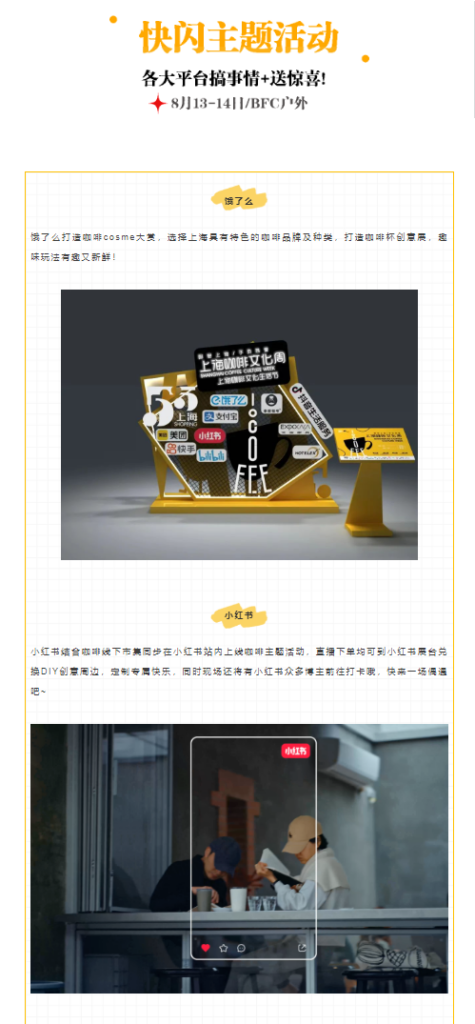 活動(dòng)只有8月13-14日兩天的時(shí)間,五大展區(qū),N+攤位,各種咖啡讓你挑花眼!同期還有各類快閃活動(dòng):
