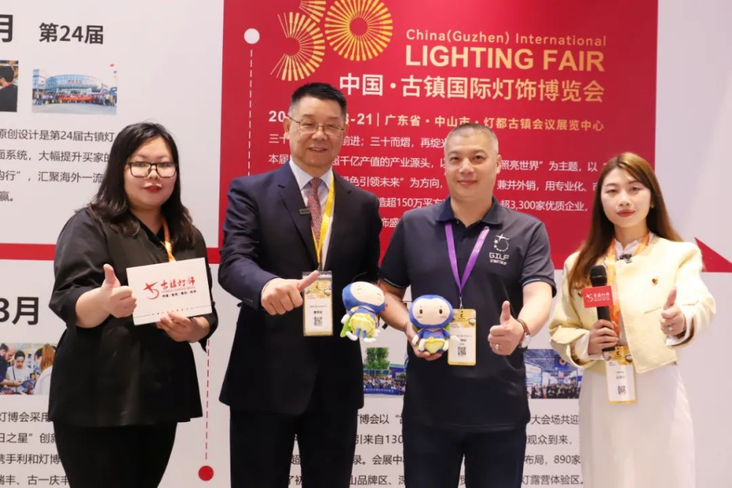 △上海博華國際展覽有限公司總經(jīng)理、中山古鎮(zhèn)燈都博覽有限公司總裁章學(xué)強(qiáng)(左二)接受古鎮(zhèn)燈飾傳媒采訪