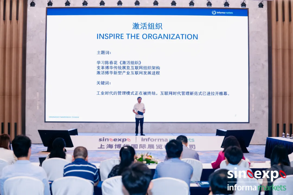 博華的創(chuàng)始人及董事王明亮先生率先做了開(kāi)場(chǎng)演講。談到激活組織,王董提到了學(xué)習(xí)陳春花教授的《激活組織》的著作,變革博華傳統(tǒng)展覽互聯(lián)網(wǎng)的組織架構(gòu)和激活博華新型產(chǎn)業(yè)互聯(lián)網(wǎng)的發(fā)展進(jìn)程。他指出互聯(lián)網(wǎng)的管理新范式已經(jīng)拉開(kāi)帷幕。我們的年中會(huì)議,組織和個(gè)人的激活二個(gè)方面都要談。公司的輪值主席團(tuán)及核心管理層的干部,在激活組織中的職責(zé),是要建成一個(gè)強(qiáng)大的組織平臺(tái),能夠聚合大量的個(gè)體智慧,讓每個(gè)個(gè)體都能在這個(gè)平臺(tái)上釋放出個(gè)人的巨大的人生價(jià)值。