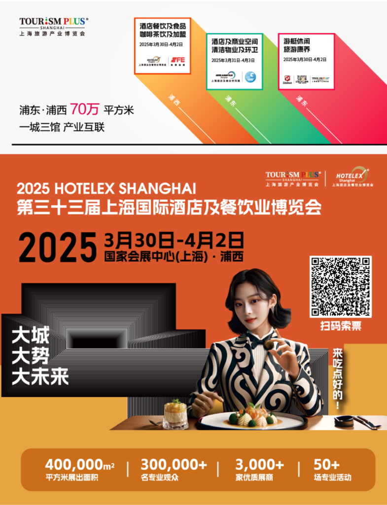 深耕酒店及餐飲行業(yè)30余年,Hotelex酒店及餐飲系列展始終步履不停。2025年3月30-4月2日,第三十三屆上海國際酒店及餐飲業(yè)博覽會即將于上海浦西·虹橋@國家會展中心舉辦。屆時,海內(nèi)外酒店及餐飲業(yè)頭部力量將齊聚滬上,邀您共同見證2025開年的“行業(yè)之春”!