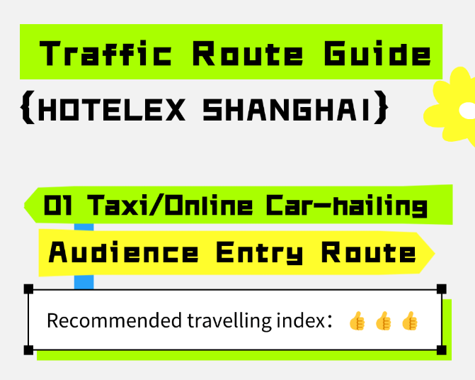 - National Exhibition and Convention Center Station, Exit 4, Exit 5 and enter the exhibition hall through the 0-meter level (1st Floor) Audience’s path ;