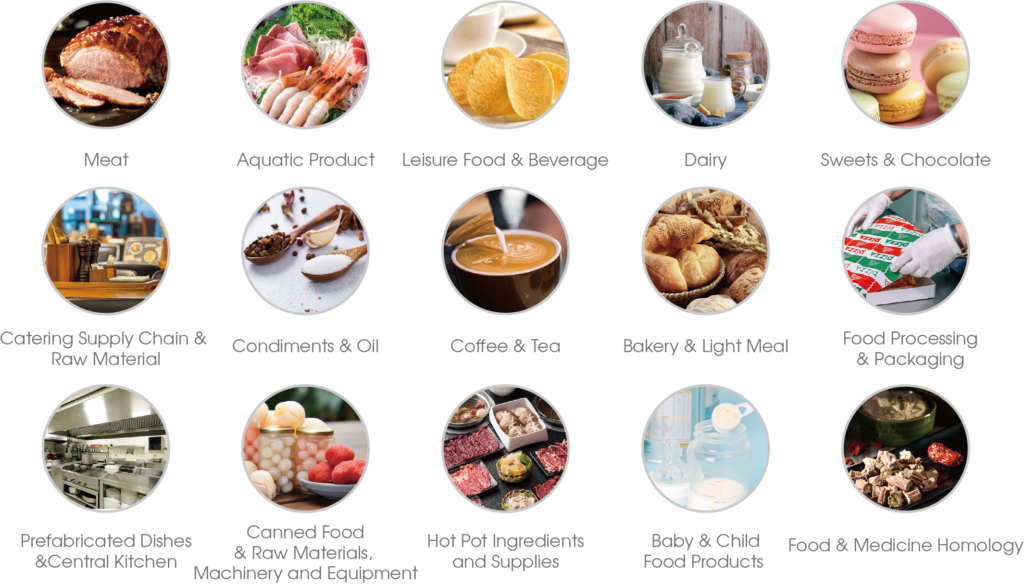 FHC Shanghai Global Food Trade Show covers 15 major exhibition sections, including meat, aquatic product, leisure food & beverage, dairy, sweets &chocolate, catering supply chain & raw material, condiments & oil, coffee &tea, bakery & light meal, food processing & packaging, prefabricated dishes & central kitchen, canned food & raw materials, machinery and equipment, hot pot ingredients and supplies, baby & child food products, food & medicine homology.